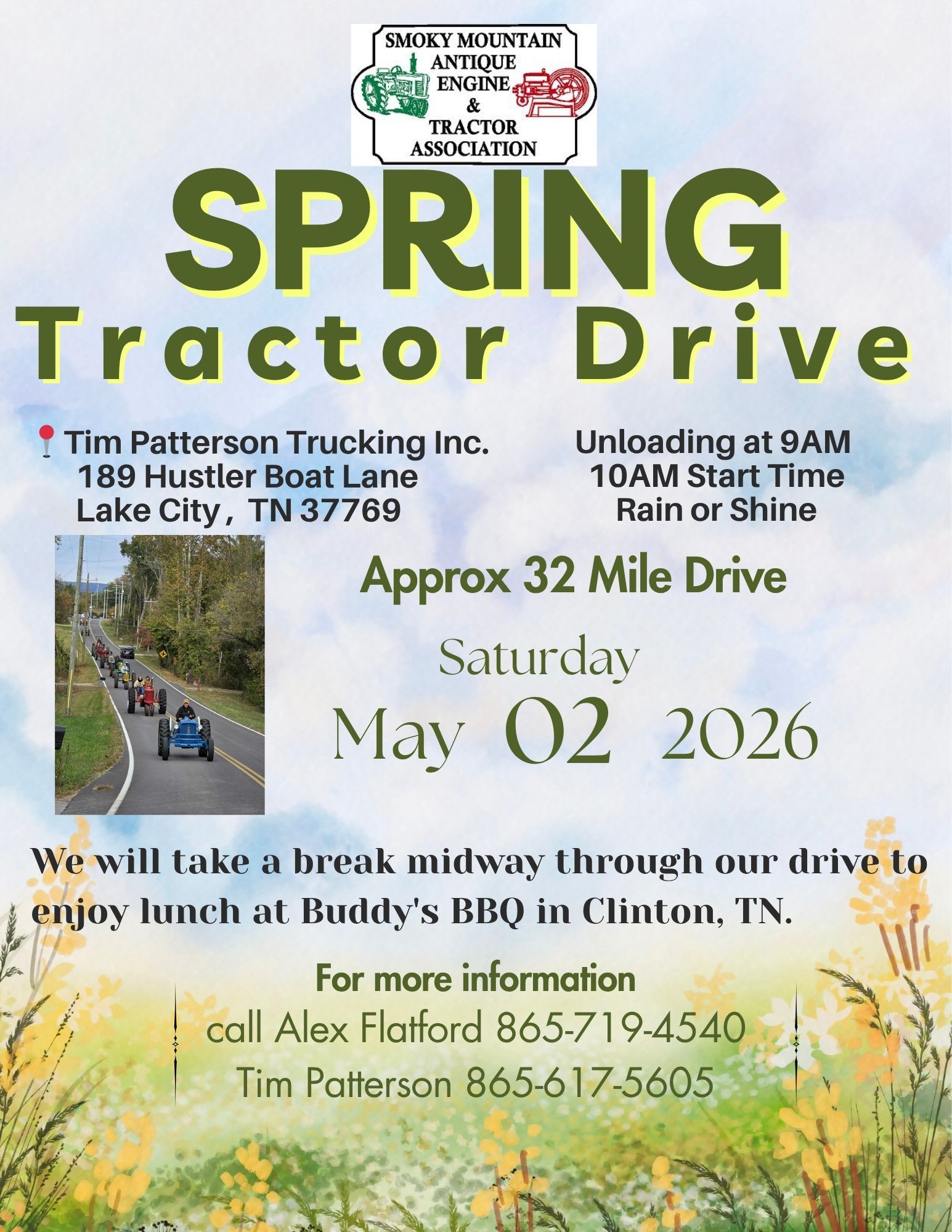 SMAETA Spring Tractor Drive. Drive starts at Tim Patterson Trucking Inc., Lake City, TN. Unloading begins at 9:00 a.m. Drive starts at 10:00 a.m. Rain or shine. For more information, […]